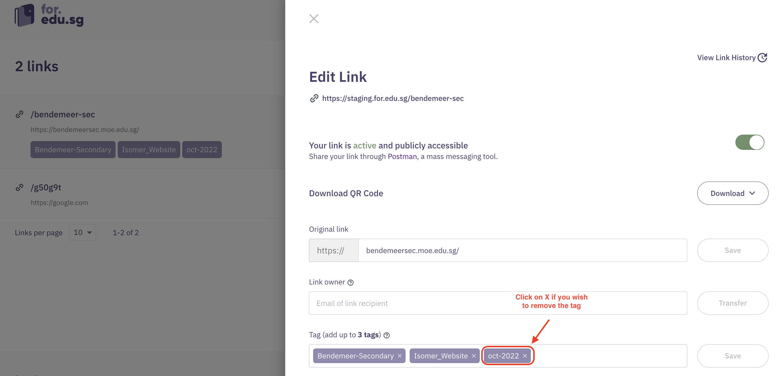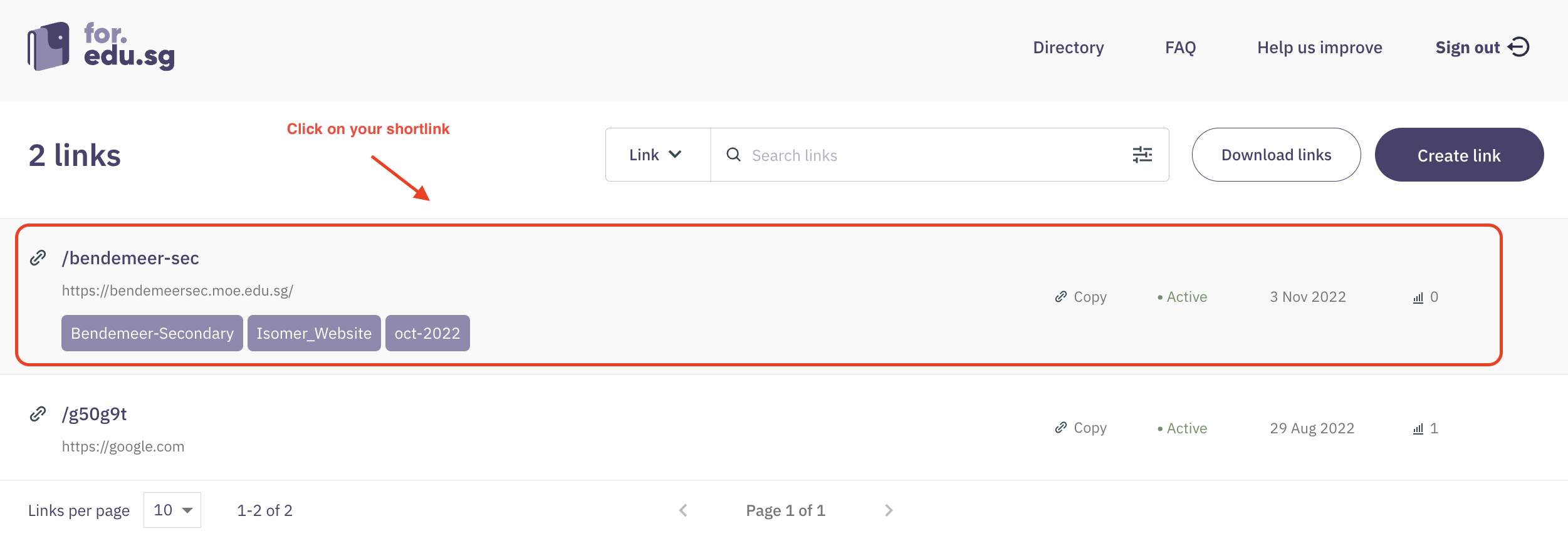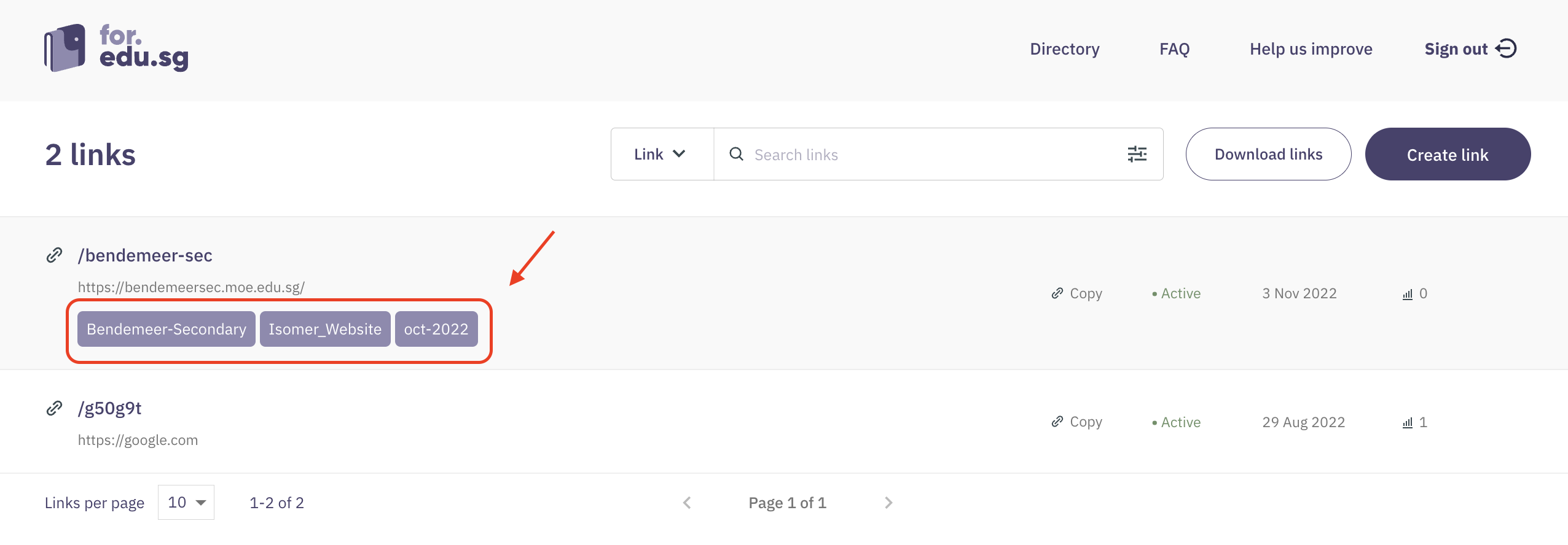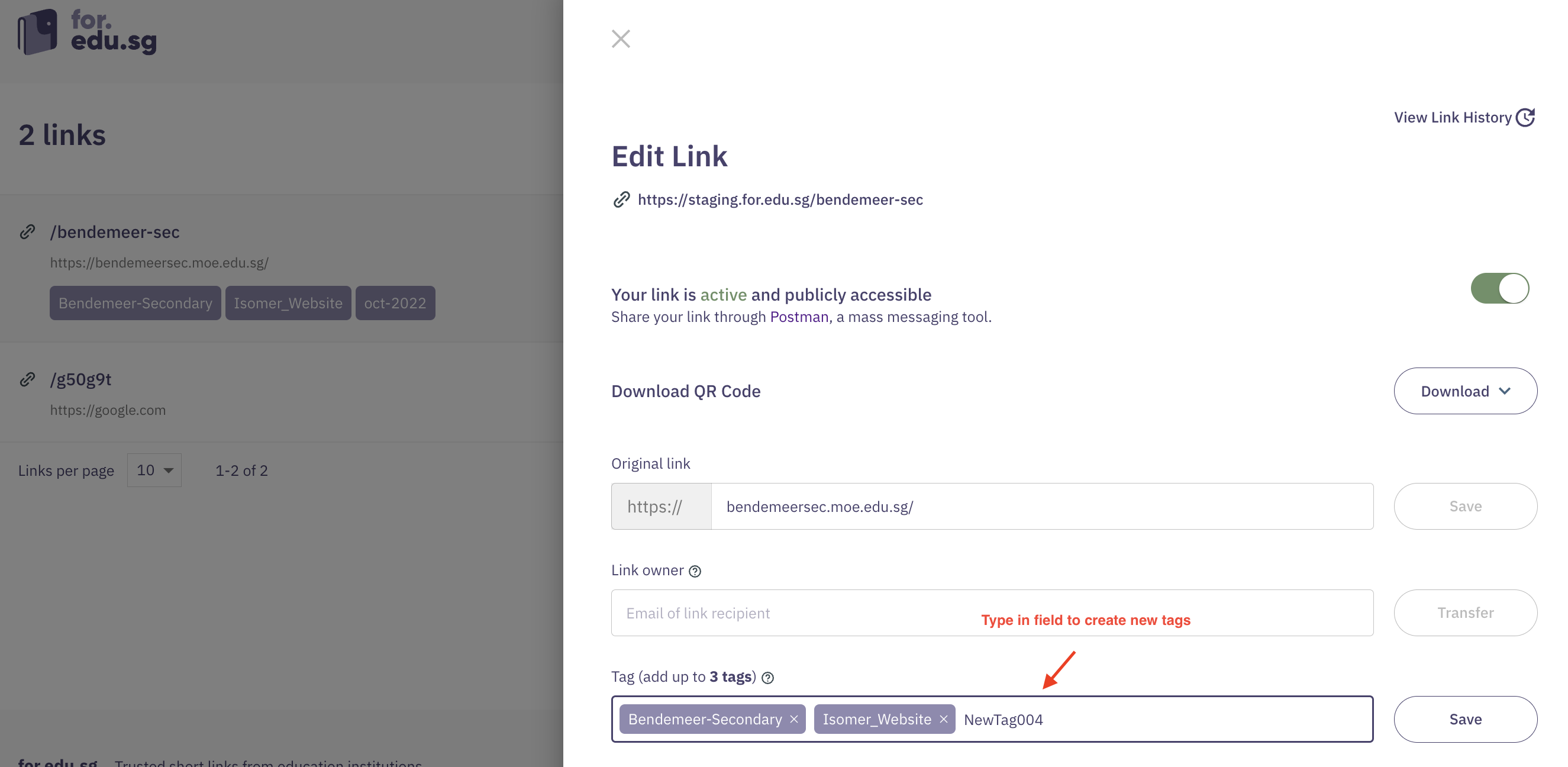 * Use tags to describe original URL that shortlink leads to, eg. “straits-times”, “FormSG”